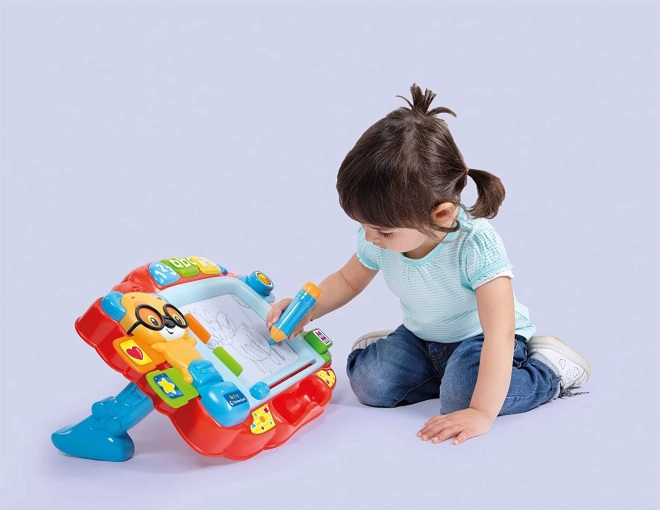 Kolorowa tablica do nauki rysowania, a także centrum aktywności z piosenkami i rymowankami do poznawania liczb, liter i kształtów.