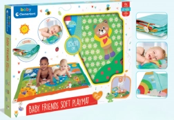 Mata CLEMENTONI BABY jest pełna kolorowych ilustracji z motywami zwierzątek i natury, które przyciągają uwagę dzieci i wspierają ich rozwój.