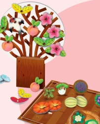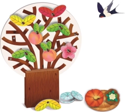 Kolorowe i zdejmowane elementy jak liście, kwiaty i owoce umożliwiają kreatywną zabawę.