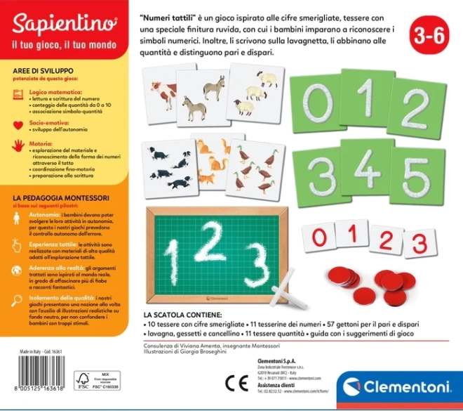 Kolekcja Montessori Dotykowe Cyfry została zaprojektowana tak, aby zapewnić dzieciom zabawne i edukacyjne doświadczenie podczas nauki liczb dzięki dotykowym kartom. Wykorzystuje specjalne matowe płytki z wypukłymi cyframi, które umożliwiają dzieciom poznawanie i zapamiętywanie ich kształtu poprzez dotyk.