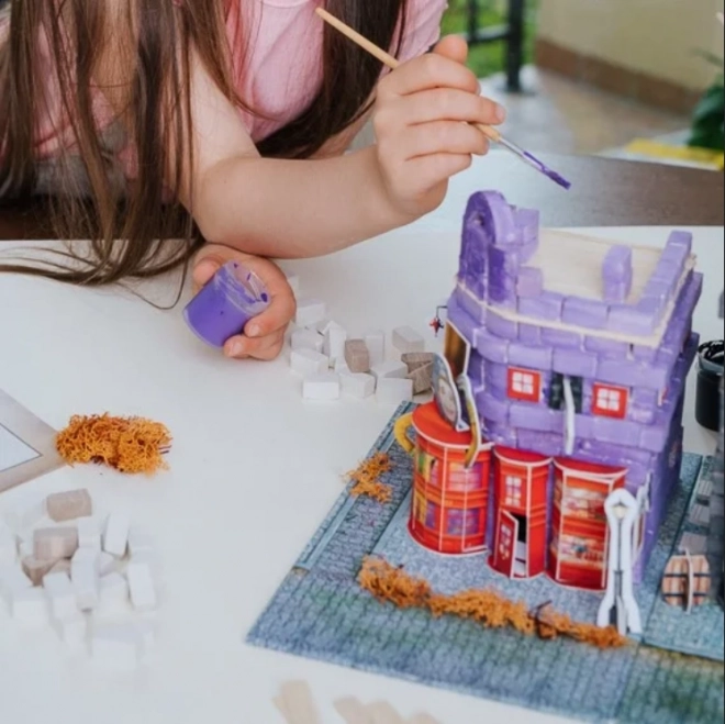 Zbuduj legendarny sklep Magiczych Figlów Weasleyów z serii Harry Potter z prawdziwych mini cegiełek i drewna. Kreatywny zestaw z 210 elementami oferuje realistyczną budowę, kartonowe dekoracje, mech i kamyki, tworząc autentyczny klimat Ulicy Pokątnej. Wielokrotnego użytku dzięki klejowi rozpuszczalnemu w wodzie, zawiera ponad 93% naturalnych materiałów i rozwija zręczność, wyobraźnię oraz koncentrację.