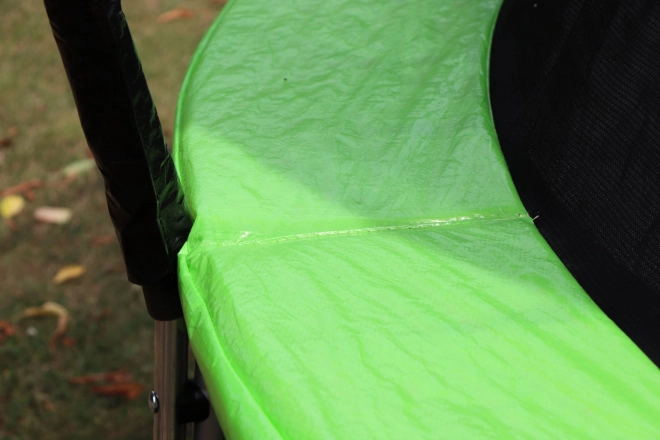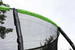 Otwór wejściowy na zamek oraz wewnętrzne umiejscowienie siatki zapobiegają wpadaniu w przestrzeń ze sprężynami. Piankowe osłony słupków zwiększają ochronę podczas ruchu.
