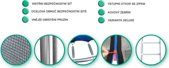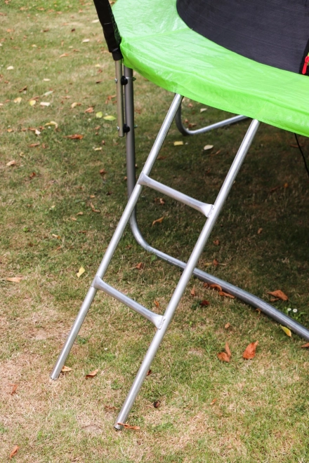 W zestawie znajduje się solidna drabinka, która ułatwia bezpieczne wchodzenie i schodzenie z trampoliny.