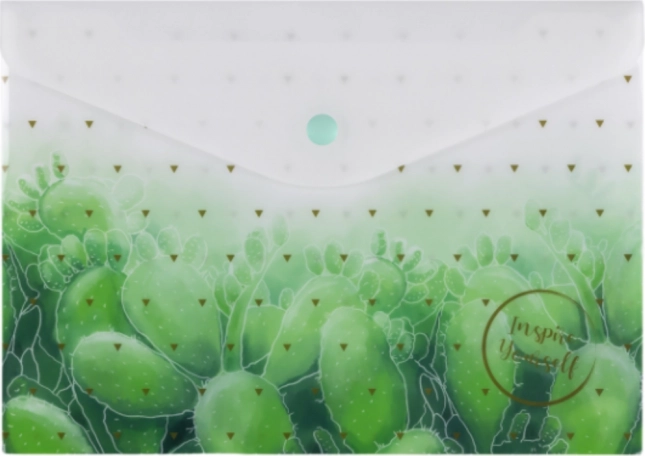 Praktyczna plastikowa kopertówka w formacie A5 z zapięciem na zatrzask i wytrzymałą grubością 200 mikronów. Atrakcyjny mix nadruków doda stylu Twoim dokumentom, które pozostaną bezpiecznie przechowywane w domu, w szkole i w biurze.