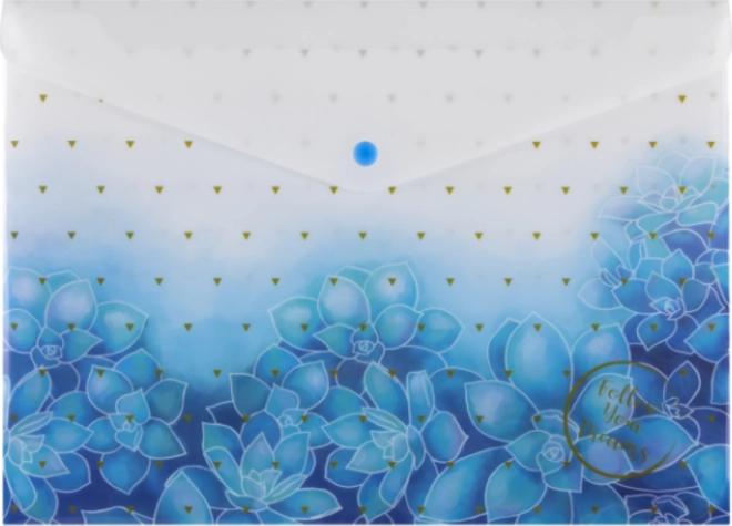 Praktyczna koperta na dokumenty w formacie A4 z atrakcyjnym nadrukiem i niezawodnym zamknięciem na zatrzask. Zapewnia bezpieczne przenoszenie i przechowywanie dokumentów, wykonana z wytrzymałego materiału o grubości 200 mikronów i dostarczana w mixie motywów. Idealna do szkoły, biura i w podróży.