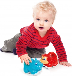 Wystarczy nakręcić, a hipopotam ruszy do przodu. Dzieci odkrywają w ten sposób zasadę przyczyny i skutku oraz trenują koordynację.