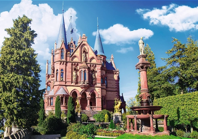 Ten elegancki zestaw jest idealny dla osób, które chcą wyeksponować swoje gotowe dzieło. Realistyczny motyw Zamku Drachenburg w malowniczym paśmie górskim Siebengebirge w Niemczech zachwyca dbałością o detale i nasyconymi kolorami. W opakowaniu znajduje się płynny klej na bazie wody z gąbkowym aplikatorem, dzięki któremu łatwo i równomiernie utrwalisz puzzle.
