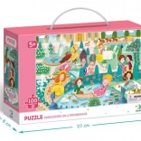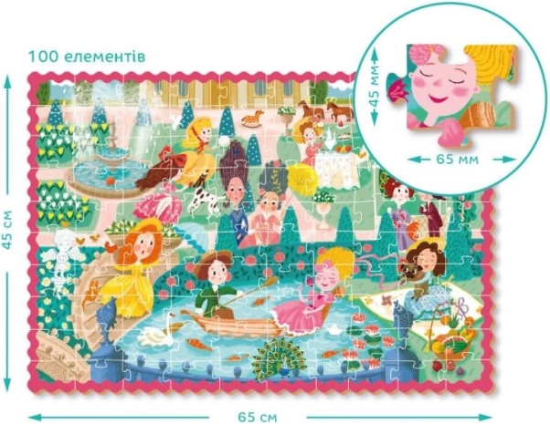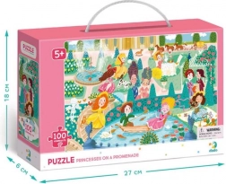 Wesołe puzzle dla dzieci dla małych miłośników baśni: 100 elementów z motywem księżniczek na promenadzie o wymiarach 65 × 45 cm. Idealne od 5 lat, wspierają rozwój logicznego myślenia, cierpliwości i motoryki małej. Praktyczne pudełko z uchwytem do łatwego przenoszenia zapewni zabawę w domu i w podróży.