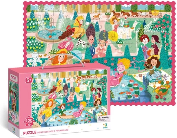 Odkryj czarujący świat księżniczek z dziecięcymi puzzlami DODO, które zachwycają żywymi kolorami i szczegółową ilustracją ogrodowej promenady. Układanie 100 elementów w dużym formacie 65 × 45 cm jest idealne dla dzieci od 5 lat – wystarczająco wymagające, a jednocześnie wciąż świetna zabawa.