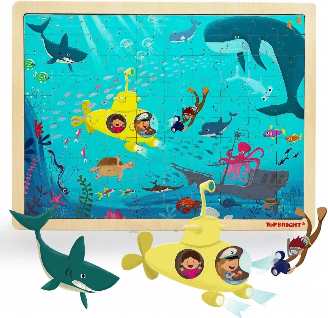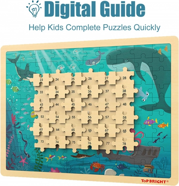 TOP BRIGHT Drewniane puzzle Podwodny świat oferują zabawę i rozwój dziecięcej wyobraźni dzięki 100 elementom na solidnej planszy, która służy jako podkładka.