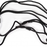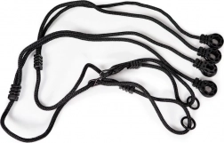 Huśtawkę można łatwo zawiesić za pomocą metalowych pierścieni na linach zawieszających, co zapewnia stabilność i wytrzymałość całego zestawu.