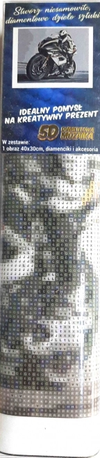 Kreatywny zestaw NORIMPEX z motywem motocykla szosowego o wymiarach 30 × 40 cm zapewnia przyjemną relaksację, łatwe tworzenie bez doświadczenia oraz kompletną zawartość w opakowaniu. Wystarczy przyklejać kamyczek po kamyczku, aby stworzyć lśniący obraz, który można łatwo oprawić (rama nie wchodzi w skład zestawu).