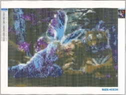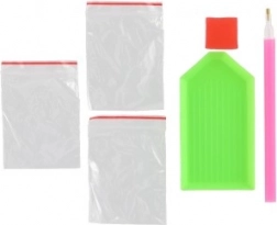 - wstępnie nadrukowane płótno, zestaw kolorowych diamencików, pióro aplikacyjne, tacka, wosk