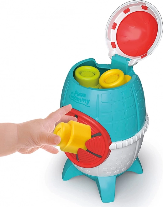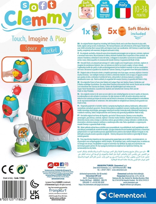 Ten kolorowy box Soft CLEMMY w formie kosmicznej rakiety oferuje dzieciom 10–36 miesięcy bezpieczne i stymulujące środowisko do pierwszych konstrukcji i odkrywania. Miękkie klocki są przyjemne w dotyku, łatwo się ugniatają, a dzięki fakturowanym powierzchniom doskonale stymulują zmysł dotyku. Figurka misia‑kosmonauty może być osadzana na klockach i włączana do kreatywnej, tematycznej zabawy.