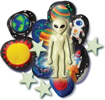 Zestaw 4M do malowania kamieni to idealny sposób, aby dzieci mogły dać upust swojej kreatywności. Ten wspaniały zestaw zawiera wszystko, czego Twoje dziecko potrzebuje do stworzenia własnych kosmicznych dzieł sztuki, w tym świecące w ciemności gwiazdki i kosmitę, który świeci w ciemności. Umożliwia dzieciom nie tylko tworzyć, ale też wymyślać własne opowieści o życiu w kosmosie.