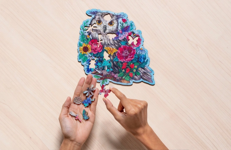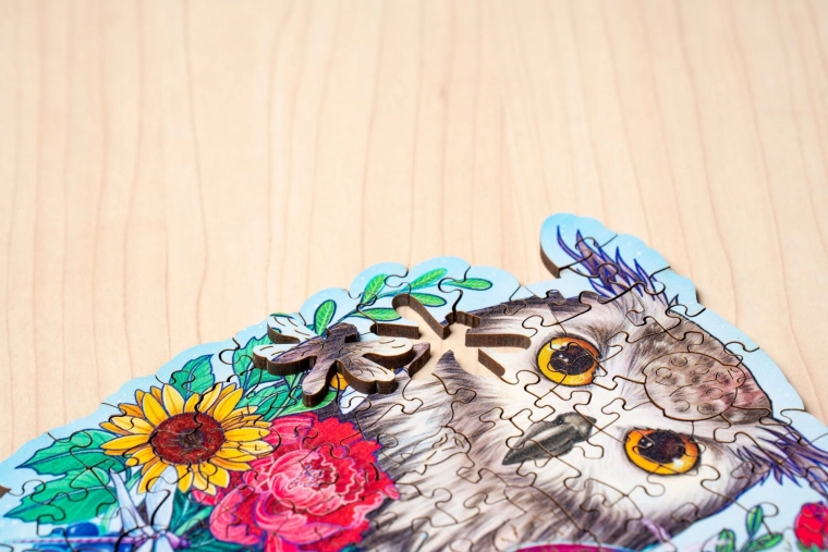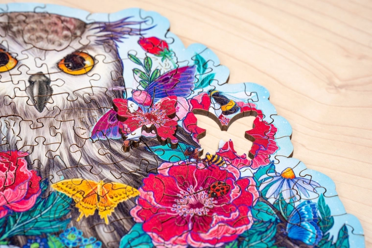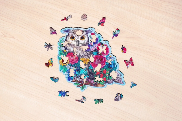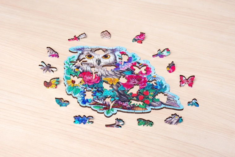 Daj się oczarować motywem tajemniczej sowy i ułóż wyjątkowe drewniane puzzle, które łączą precyzyjne wykonanie, piękne kolory i relaks z sensem. Elementy o unikalnych kształtach – od zwierząt i kwiatów po abstrakcyjne sylwetki – zapewniają przyjemne wyzwanie i zabawę dla całej rodziny.
