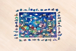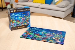 Znajdź chwilę dla siebie i zanurz się w fascynującym motywie oceanu pełnego ryb, koralowców i morskich stworzeń. Drewniane puzzle z 500 elementami łączą wysoką jakość wykonania, elegancki design i przemyślaną rozrywkę dla całej rodziny. Dzięki precyzyjnie wyciętym kształtom, w tym elementom przypominającym zwierzęta i rośliny, układanie jest pomysłowe i angażujące.