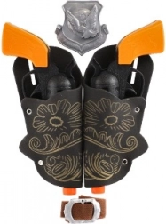 Dzieci rozwiną wyobraźnię, odgrywanie ról i małą motorykę, ciesząc się bezpieczną, dynamiczną rozrywką. Pasek z klamrą utrzymuje kabury na miejscu, więc wszystko jest gotowe na szybkie dobycie broni jak w prawdziwym westernie.