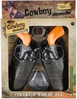 - Kompletny zestaw: 2 pistolety, 2 kabury, pasek, odznaka szeryfa