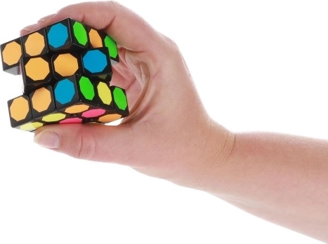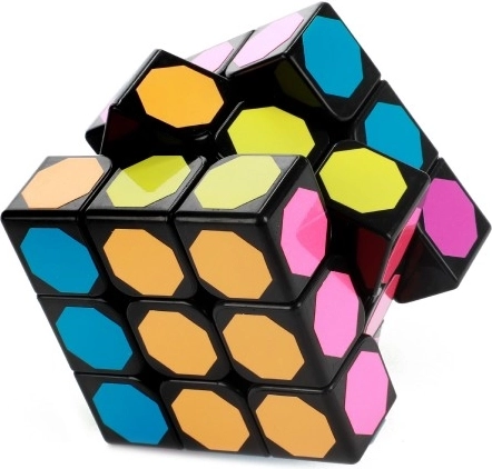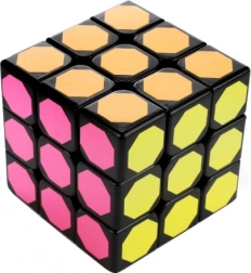 Ta kostka łamigłówka ma wyjątkowy design, obejmujący wielobarwne sześciokątne naklejki na czarnej plastikowej podstawie. Idealna do umysłowych ćwiczeń i zabawy.