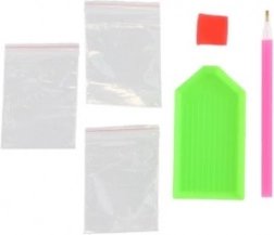 Zawiera wszystkie niezbędne akcesoria, w tym aplikacyjne pióro, miseczkę na kamyczki i wosk.