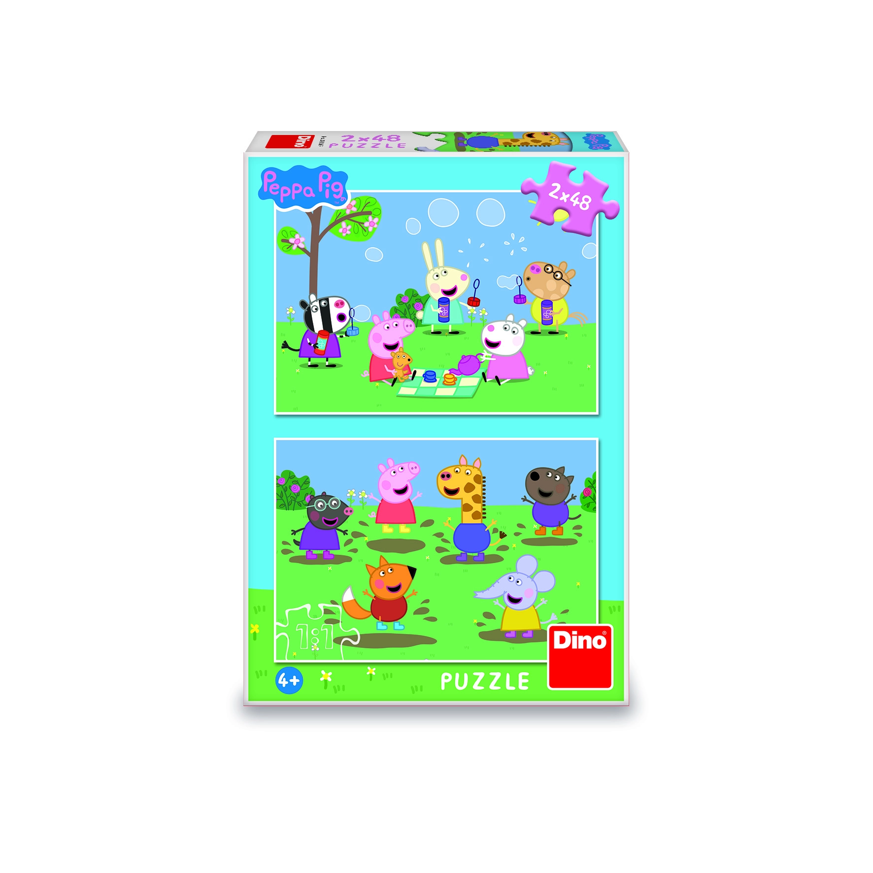 Ułóż puzzle z ulubionymi dziecięcymi postaciami ze Świnki Peppy. Zestaw zawiera 2 x 48 elementów, które rozwijają umiejętności dziecka i ćwiczą zręczność. Puzzle doskonalą motorykę małą, a także trenują mózg.
