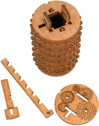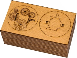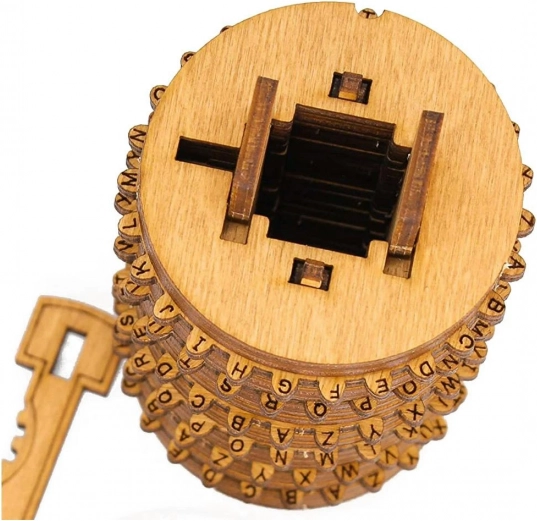 Drewniany Cryptex to przemyślana mechaniczna łamigłówka złożona z 57 precyzyjnych elementów z naturalnego drewna brzozowego. Obrotowe pierścienie z literami tworzą zamek kombinacyjny, który otwierasz, ustawiając właściwy kod. W środku znajduje się tajna skrytka (2 × 2 × 8 cm) idealna na małą niespodziankę, wiadomość lub drobny prezent.