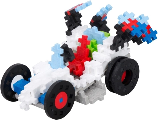 Zestaw Plus-Plus Naucz się budować - Auta jest idealny do rozwijania kreatywności i motoryki małej u dzieci. Dzięki ponad 480 elementom, 2 podkładkom i 6 kółkom pozwala budować różne modele pojazdów, takie jak auta, motocykle i trójkołowce.