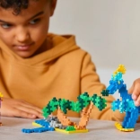 Zestaw umożliwia tworzenie zarówno w 2D, jak i w 3D. Dzieci mogą budować nie tylko dinozaury, ale też bardziej złożone struktury, takie jak wulkany czy różne scenografie.