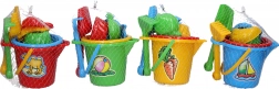 Wiaderko 16 × 11 cm, sito, grabki, łopatka, 3× foremka (babeczka, rybka, kaczuszka)