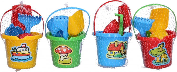 Praktyczny dziecięcy zestaw do piasku z małym wiaderkiem o wymiarach 10 × 11 cm jest idealny na plac zabaw i plażę. Zawiera wiaderko, grabki, łopatkę oraz 3 foremki (rybka, babka piaskowa, kaczuszka). Dostępny w 4 wariantach kolorystycznych – niebieskim, czerwonym, żółtym i zielonym.
