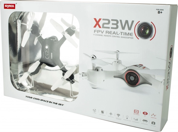 Jest wyposażony w 6-osiowy żyroskop, dzięki czemu lot jest bardzo stabilny, a model staje się zwinniejszy i bardziej zwrotny. Dodatkowo ma zintegrowaną kamerę z transmisją wideo online na wyświetlacz Twojego telefonu oraz nagrywaniem w jakości 640×480p. Możesz więc nagrywać filmy i robić zdjęcia ze swoich podniebnych przygód! Model można sterować wyłącznie telefonem, a nawet zaprogramować trasę, którą następnie model obleci samodzielnie. Wszystko w aplikacji mobilnej. Nie tylko w gorszych warunkach oświetleniowych docenisz oświetlenie LED, w które Syma X23W jest wyposażona. Ten dron zapewni rozrywkę całej rodzinie, a dzięki swoim rozmiarom możesz zabrać go wszędzie ze sobą!