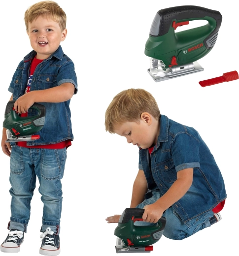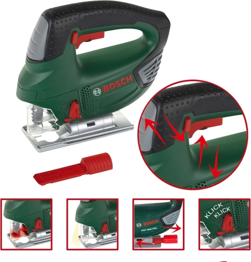 Dziecięca wyrzynarka w kultowym, ciemnozielonym kolorze BOSCH to wierna kopia prawdziwego narzędzia, lecz całkowicie bezpieczna dla dzieci. Solidne wykonanie i dbałość o detale wspierają realistyczną zabawę, podczas której dzieci bezpiecznie naśladują dorosłych, rozwijając zręczność i wyobraźnię.