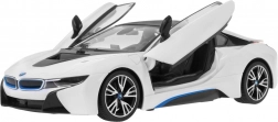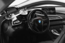 Naciśnięcie przycisku na pilocie unosi ikoniczne drzwi BMW i8 – imponujący efekt podczas zabawy i ekspozycji modelu.