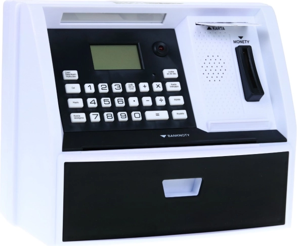Ta sprytna skarbonka w formie bankomatu pomaga dzieciom zrozumieć, jak działa prawdziwy bankomat – włóż kartę, wprowadź PIN i wybierz operację. Urządzenie rozpoznaje polskie monety (PLN), sumuje oszczędności i motywuje do realizacji celu dzięki trybowi planowania oszczędzania.