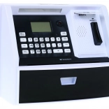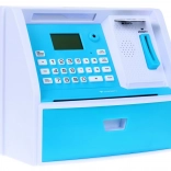Interaktywna skarbonka w kształcie bankomatu z kartą płatniczą i PIN-em pomoże dzieciom od 3 lat uczyć się zarządzania pieniędzmi. Umożliwia liczenie polskich monet (PLN w oryginale), ma zegar i budzik, cel oszczędnościowy, zamek na hasło oraz 2 porty USB do zasilania urządzeń.