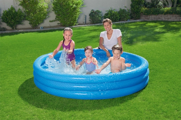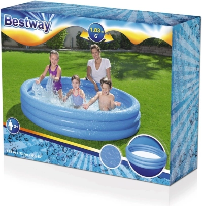 Praktyczny dmuchany basen dla dzieci, który w kilka chwil przygotujesz do wodnych zabaw. Trzy równomierne komory zapewniają stabilność i komfort, a wytrzymały, wstępnie testowany winyl wydłuża żywotność nawet przy częstym użytkowaniu.