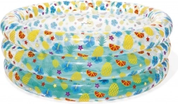 Spraw dzieciom radość letnim orzeźwieniem w nadmuchiwanym baseniku z wesołym, owocowym nadrukiem. Dzięki średnicy 170 cm i wysokości 53 cm oferuje dużo miejsca do zabawy, a trzypierścieniowa konstrukcja zapewnia stabilność, zaś miękkie, nadmuchiwane dno wygodę. Basenik jest łatwy do nadmuchiwania i spuszczania, idealny dla dzieci od 6 lat.