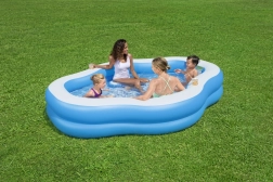 Ciesz się latem z przestronnym rodzinnym basenem BESTWAY, który oferuje zintegrowane nadmuchiwane siedziska, uchwyty na napoje oraz przezroczyste okienko dla jeszcze większej zabawy i komfortu. Wytrzymały winyl, stabilna konstrukcja i łatwe pompowanie/składanie sprawiają, że to idealny basen ogrodowy dla dzieci i dorosłych.