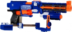 W zestawie znajduje się 20 piankowych strzałek oraz laserowy celownik. Przesuwne okienko serwisowe pomaga przy zacięciu strzałki, a przełącznik ON/OFF bezpiecznie blokuje spust.
