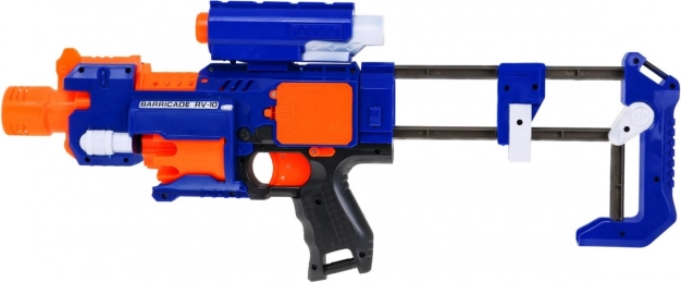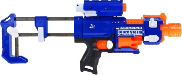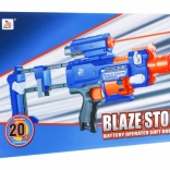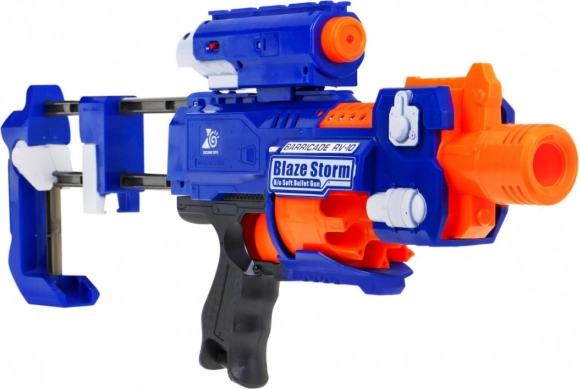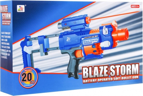 Blaze Storm to niezawodny piankowy blaster w niebiesko‑pomarańczowej kolorystyce, który ucieszy każdego małego fana dynamicznej zabawy. Dzięki automatycznemu napędowi elektrycznemu na 3× AA oraz przedniemu ładowaniu dzieci cieszą się płynną i bezpieczną rozgrywką. Celownik laserowy (2× LR44 w zestawie) pomaga celować precyzyjnie, a okienko do usuwania zaciętej amunicji zapewnia bezproblemowe działanie.