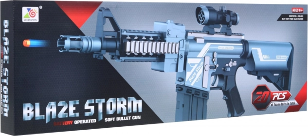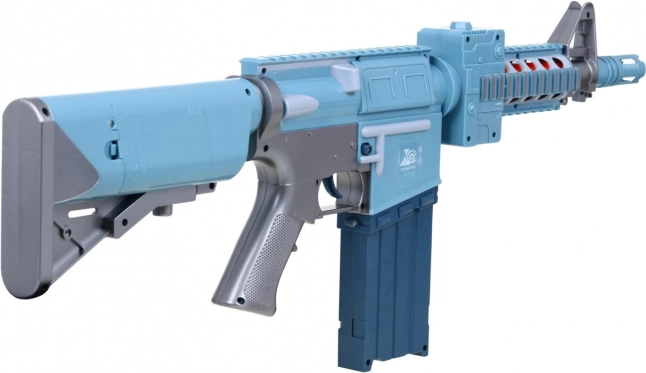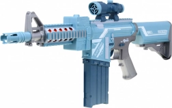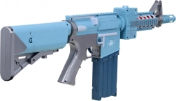 Elektryczny kompresor zasilany 5× bateriami AA (brak w zestawie) zapewnia płynne, w pełni automatyczne strzelanie – wystarczy nacisnąć spust, a każdy nacisk oddaje jeden strzał. Spust można zablokować przełącznikiem ON/OFF dla bezpieczeństwa dzieci. Długa lufa z rolkami prowadzącymi stabilizuje strzał dla większej celności.
