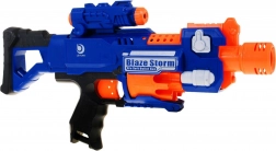 BLAZE STORM to dziecięcy elektryczny blaster zaprojektowany do bezpiecznej i dynamicznej zabawy. Dzięki w pełni automatycznemu kompresorowi elektrycznemu (zasilanie 3× AA, brak w zestawie) umożliwia szybkie strzelanie bez manualnego przeładowywania. Przednie ładowanie i bębenkowy magazynek na 10 nabojów zapewniają płynną akcję, a przesuwne okienko ułatwia usuwanie ewentualnie zaciętych strzałek.