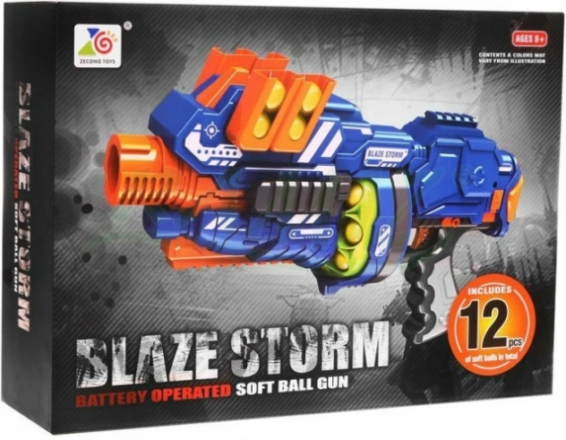 Zabawa pełna akcji, bezpieczna dla dzieci od 8 lat! Półautomatyczna wyrzutnia Blaze Storm strzela miękkimi piankowymi kulkami z zasięgiem do 10 m, oferuje półautomatyczny tryb elektryczny, magazynek na 8 nabojów oraz dodatkowe uchwyty na zapasowe magazynki. W zestawie znajduje się 12 sztuk piankowych pocisków do natychmiastowej zabawy.