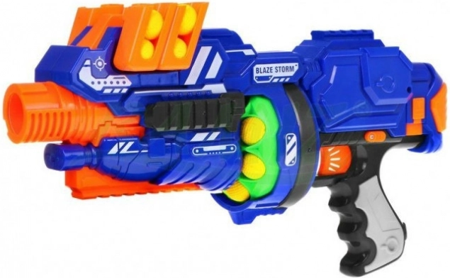 Ergonomiczna konstrukcja z bębnowym magazynkiem na 8 nabojów oraz uchwytami na zapasowe magazynki po bokach lufy zapewnia szybkie przeładowanie. Piankowe kulki są lekkie i miękkie, co czyni je odpowiednim wyborem do dziecięcych potyczek.