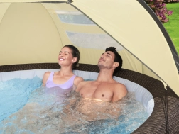 To zadaszenie do wanien z hydromasażem zapewni doskonałą ochronę i prywatność podczas czasu relaksu na ogrodzie. Z wentylowanymi oknami zapewniającymi swobodny przepływ powietrza i łatwym montażem jest idealnym dodatkiem do wszystkich typów wanien Bestway, z wyjątkiem modeli St. Lucia i Vancouver.