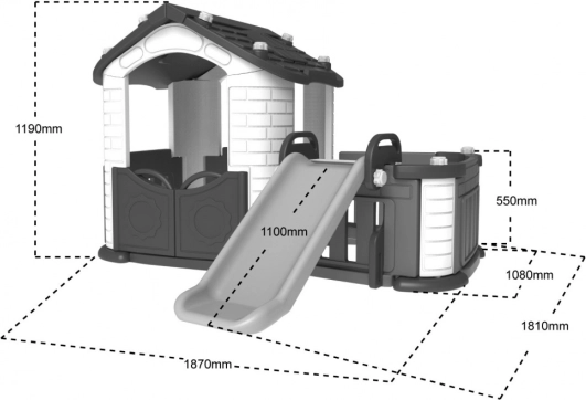 Użyj tego domek dziecięcy do stworzenia idealnej przestrzeni do zabawy w Twoim ogrodzie. Jego przestronne wnętrze zapewnia dużo miejsca na zabawę, podczas gdy bezpieczna zjeżdżalnia z solidnymi schodkami zapewnia godziny radości. Ogrodzenie wokół ogródka dodaje dodatkową warstwę bezpieczeństwa i umożliwia dostęp do zjeżdżalni.