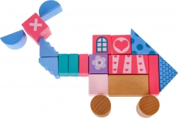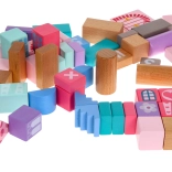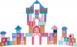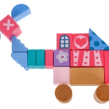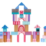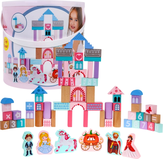 Drewniany zestaw klocków, zaprojektowany z naciskiem na bezpieczeństwo, zawiera 67 zróżnicowanych elementów, które łączą zabawę z nauką. Dzieci mogą poprzez zabawę poznawać kształty, figury geometryczne oraz rozwijać logiczne myślenie. Klocki są pakowane w wiaderko z pokrywką wyposażoną w sorter, do którego można wkładać klocki o odpowiednich kształtach.