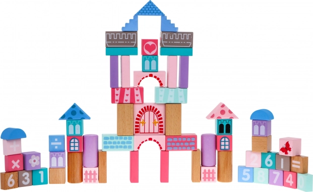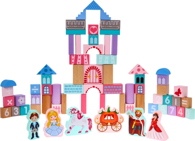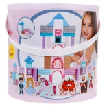 Zestaw zawiera kolorowe klocki, z których można zbudować bajkowy zamek, wspierający dziecięcą kreatywność.