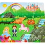W skład zestawu wchodzą drewniane zabawki w kształcie bajkowych postaci, które poszerzają możliwości kreatywnej zabawy.